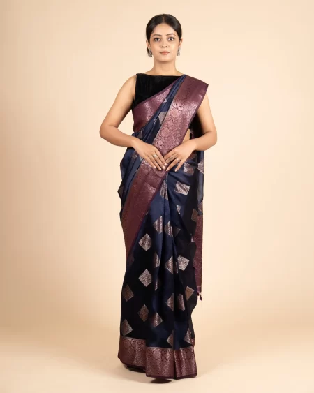 Everyday Comfort Floral Weaving Navy Dupion Silk